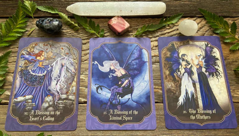 Then I invite you to see in your mind’s eye a glorious warm dark night sky, you feel safe, you feel supported and held and as the clouds pull away  you see stars that will guide you.  Breathe that in.  Allow this gorgeous Feminine Darkness to gently wrap around you and guide you and then when you are ready pick a card or cards that call to you.