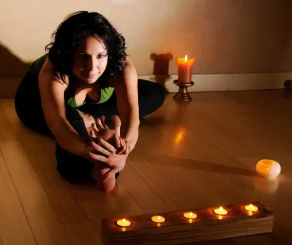 Begin by switching your phone to “do not disturb.” Create an ambient, sacred atmosphere—dim the lights, light one or more candles, and perhaps burn some incense (safely) if that feels right to you. Whether you do this indoors or out, the goal is to create a space that feels soothing, magical, and receptive. Also make sure you have a little room to move.